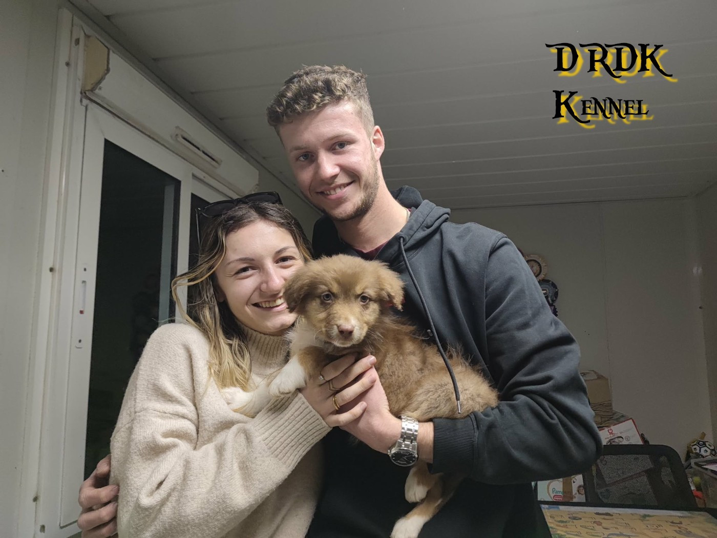 Femelle rouge merle queue longue collier "ROUGE" - disponible en contrat de stérilisation.